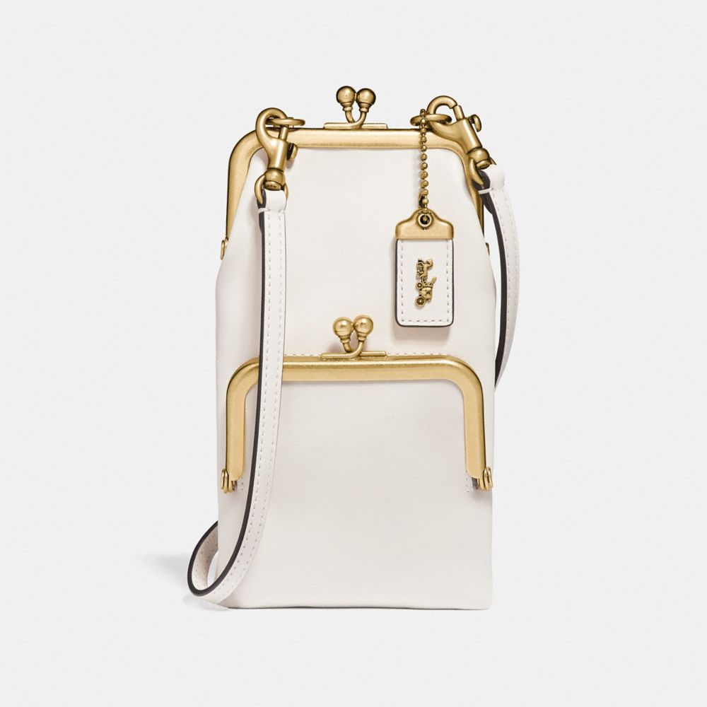 • Based on a 1960s archival Coach design inspired by vintage coin purses, the Double Frame Crossbody 12 features our iconic kisslock closures. This petite, slim silhouette is crafted in smooth glovetanned leather and has room to carry a phone, keys, cards and cash. Perfect for nights out, it has an exterior pocket for easy access to essentials.