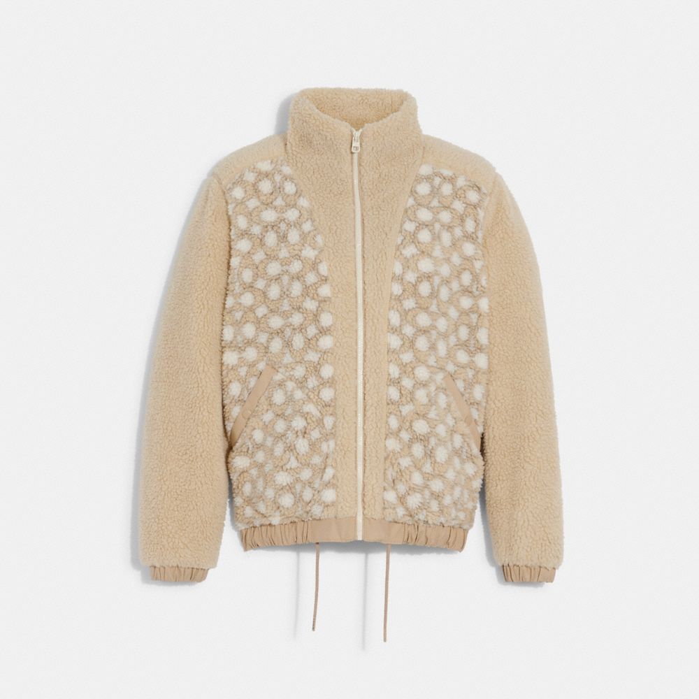 Crafted in a mix of recycled fabric and cozy sherpa, this jacket is part of Coach Forever, a collection inspired by our commitment to rethinking and reducing our impact on the planet. Ultra-plush and soft to the touch, it's finished with slip pockets and is detailed with our Signature.