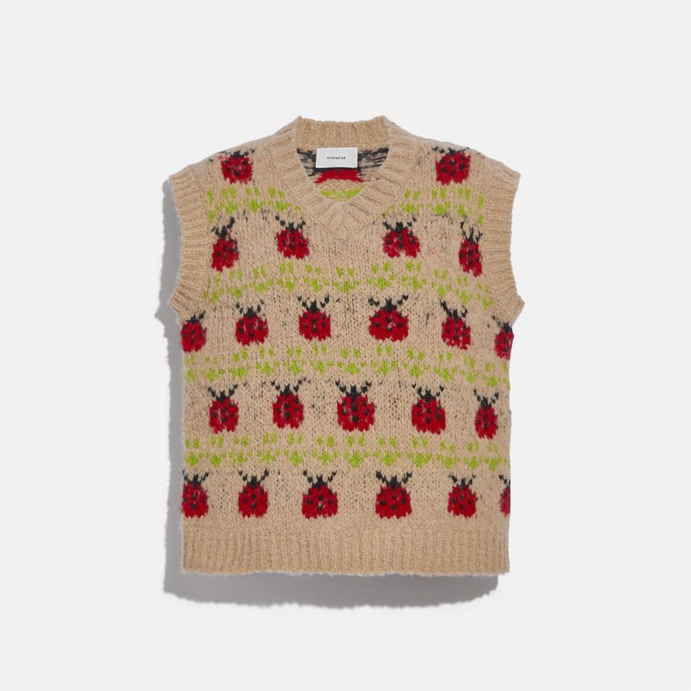 Bring on the luck with this playful knit V-neck featuring a bright ladybug motif. Crafted in a soft blend of alpaca and wool, it’s designed with a relaxed fit and wide rib-knit trim.