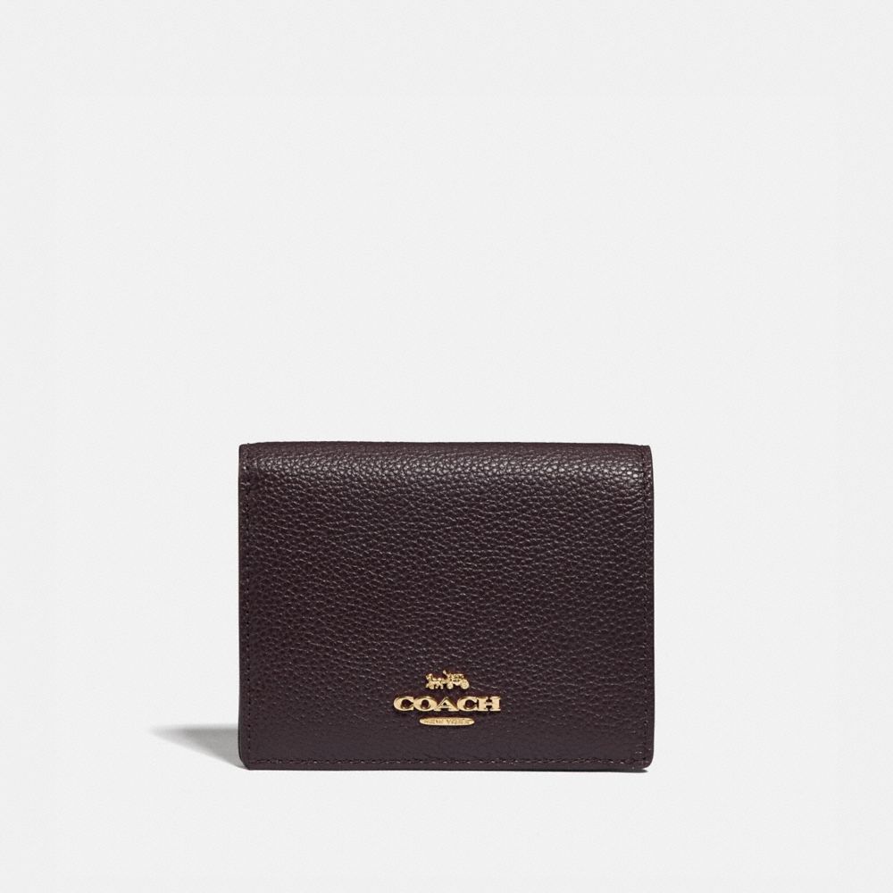 Crafted of polished pebble leather, this small bifold wallet easily fits into a compact wristlet or crossbody bag. Secured by a snap closure, the petite design is perfectly organized to hold cards, cash and receipts.